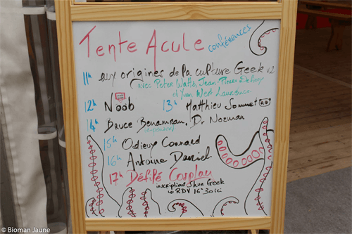 Nous pouvons aussi vous annoncer la tenue du Forum IRL, organisé par Hacking Social avec la participation du Collectif #OnVautMieuxQueCa, Mademoiselle Cordélia et des Déboulonneurs de Pub de Lille, ainsi que le Village du Libre, organisé par Framasoft avec la participation de La Quadrature du Net, l’April, ADL, Café Vie Privée, Ubuntu-Fr, Open Food France, Savoir-Com1, Blogul  Mozzilla, Calimaq et d’autres encore.