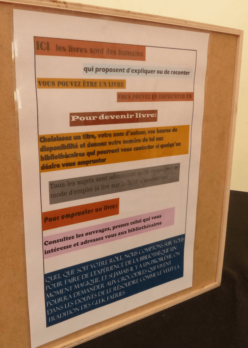 Le principe est simple : vous choisissez votre sujet, vous vous inscrivez à la bibliothèque vivante, vous donnez votre numéro de tel aux bibliothécaires ainsi que les heures auxquelles il est possible de vous emprunter.