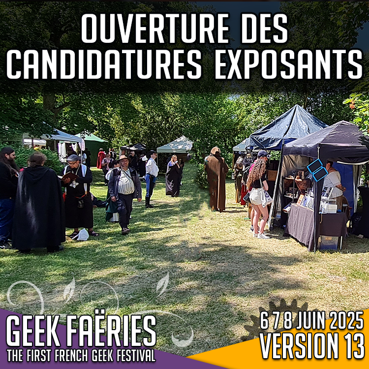 Bien plus qu’un lieu de vente les Geek Faëries sont avant tout un lieu d’exposition et de d’échange. Créé en 2010, et premier festival geek en France, notre festival s’est dédié au partage des passions de la culture internet sous toutes ses formes. Nos exposants sont choisis en fonction de leur capacité à y contribuer afin de satisfaire notre public spécialisé.