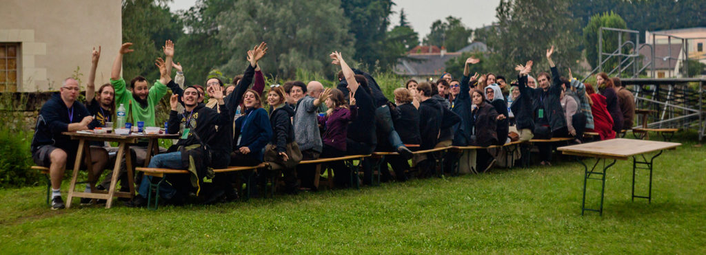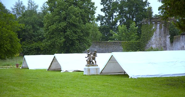 Dimanche 29 et lundi 30 Mai : les orgas et une partie de l’équipe débarquent à Selles-sur-Cher. La première mission : amener sur place et monter les barnums. La pluie n’en finit pas. Impossible de se sécher, tout est trempé, le tas de linges mouillés grossit à vue d’œil, nous renonçons à vivre au sec. Les pieds trempés, plein d’ampoules, avec l’eau c’est pas très beau à voir.