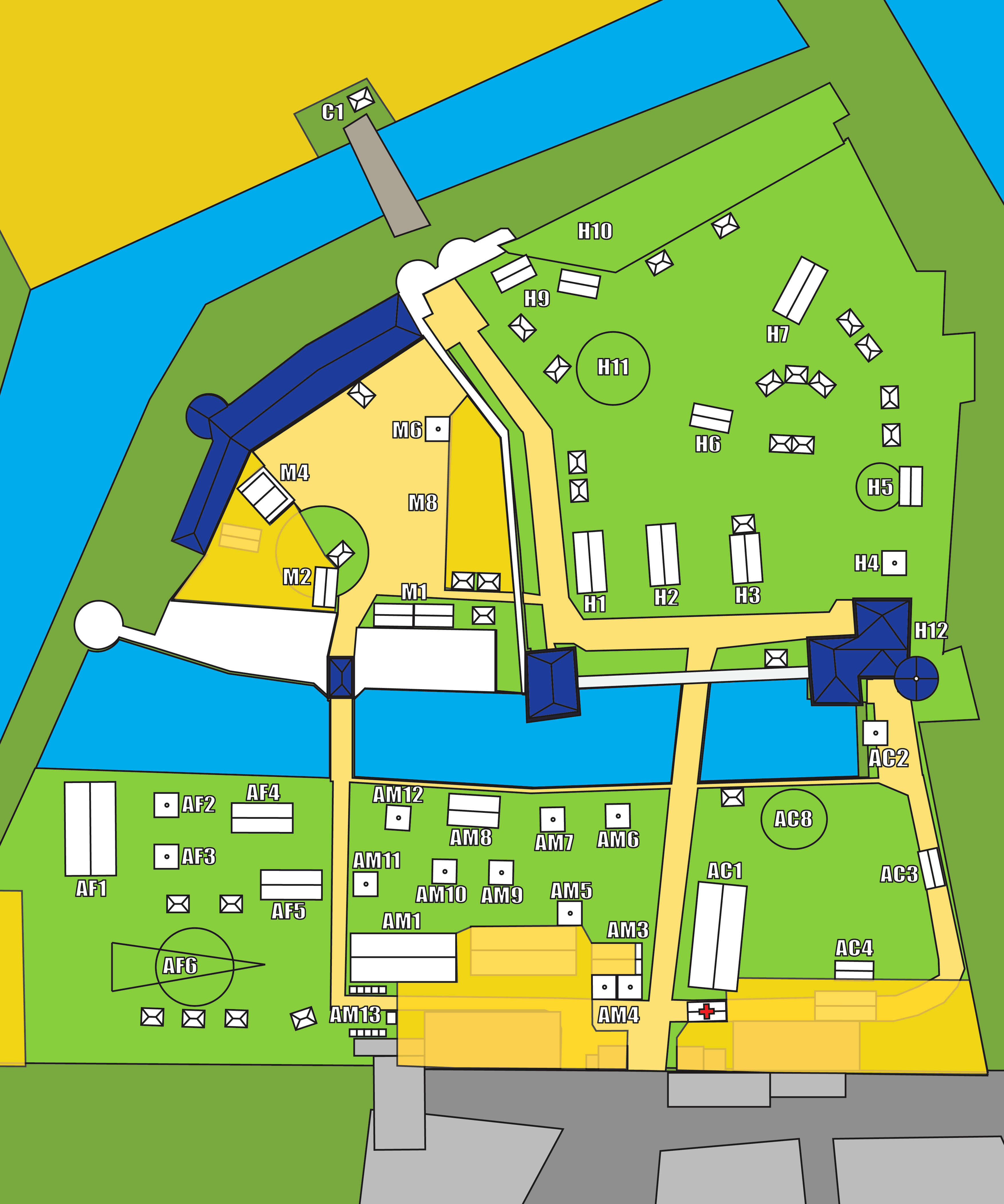 | C1 | Porte médiévale du Château | H11 | Le Stade de Quidditch |